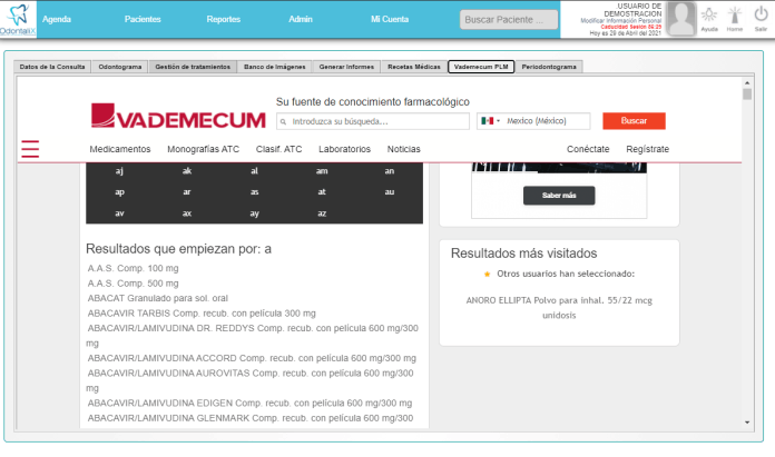 Odontalix te permite la consulta de medicamentos en el Vademecum (herramienta externa).